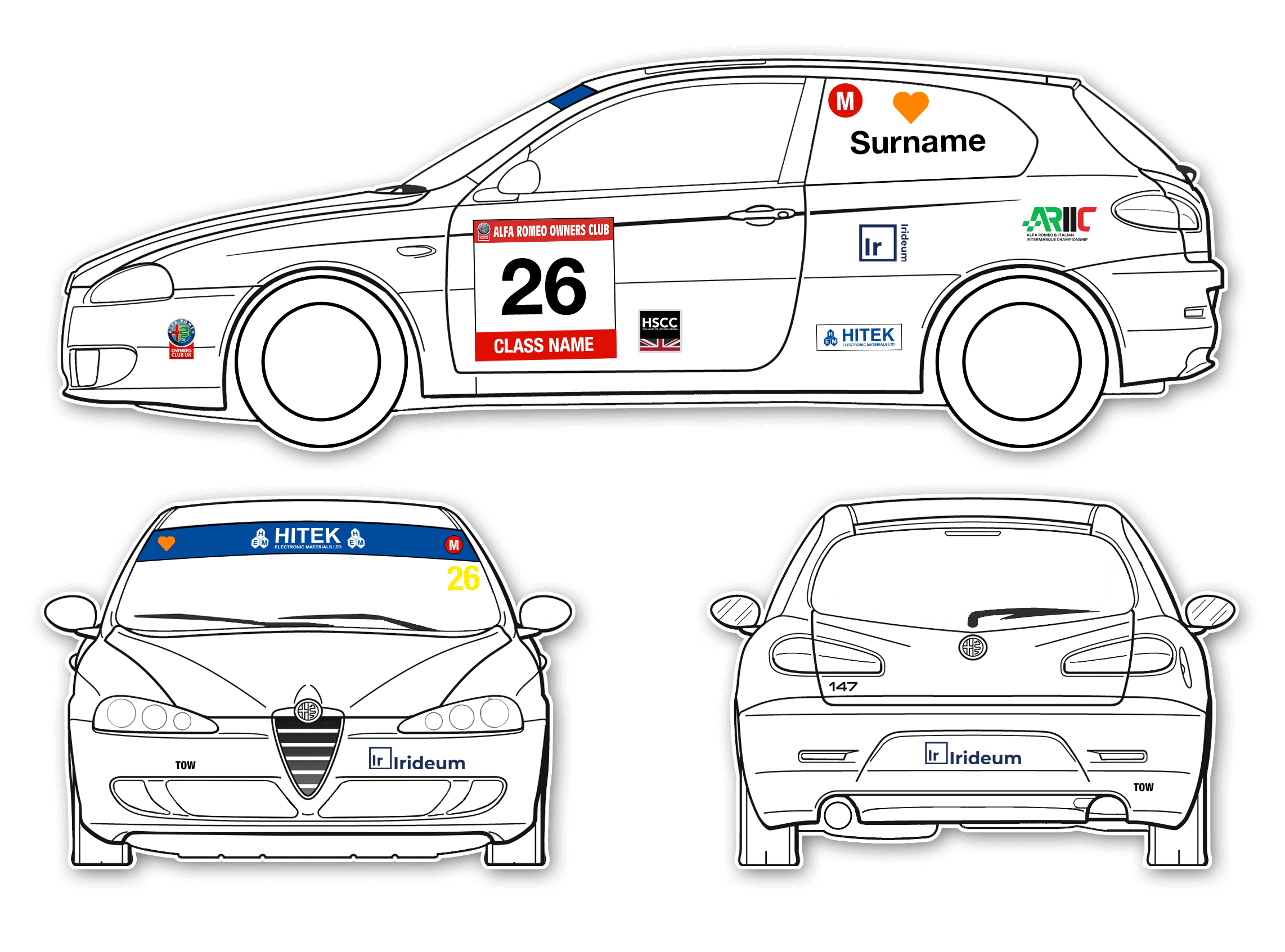 Our sponsors this season will be (HITEK Electronic Materials Ltd. (lead sponsor), The Alfa Romeo Owners’ Club and Irideum.